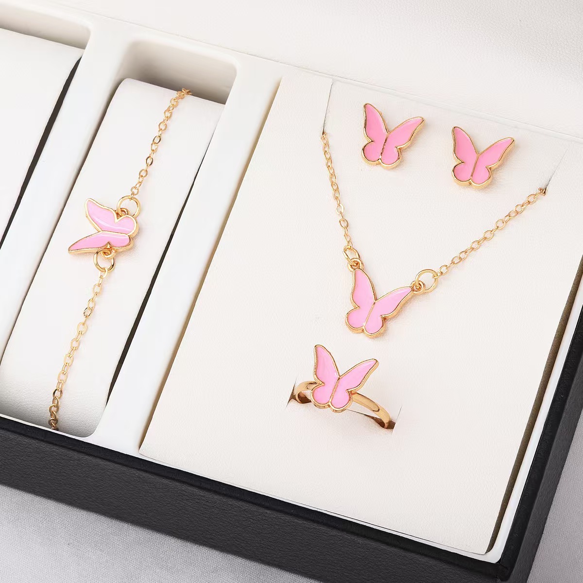European and American Export Butterfly Drop Glaze Necklace, Exquisite and Versatile, Niche Fashion, High-End Clavicle Chain, Elegant Necklace Set