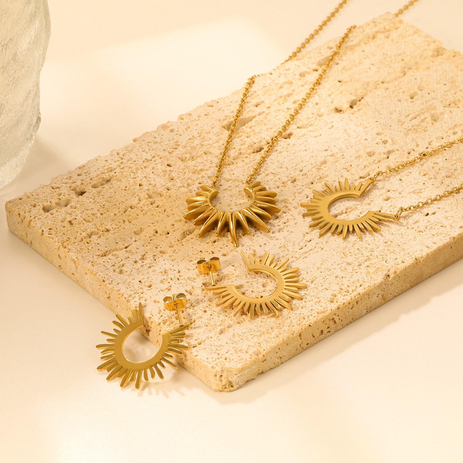 Vintage Titanium Steel Jewelry suit Exaggerated Niche Sunflower Bracelet Grid Pattern Gold-plated Neckchain Stainless Steel Jewelry for Women