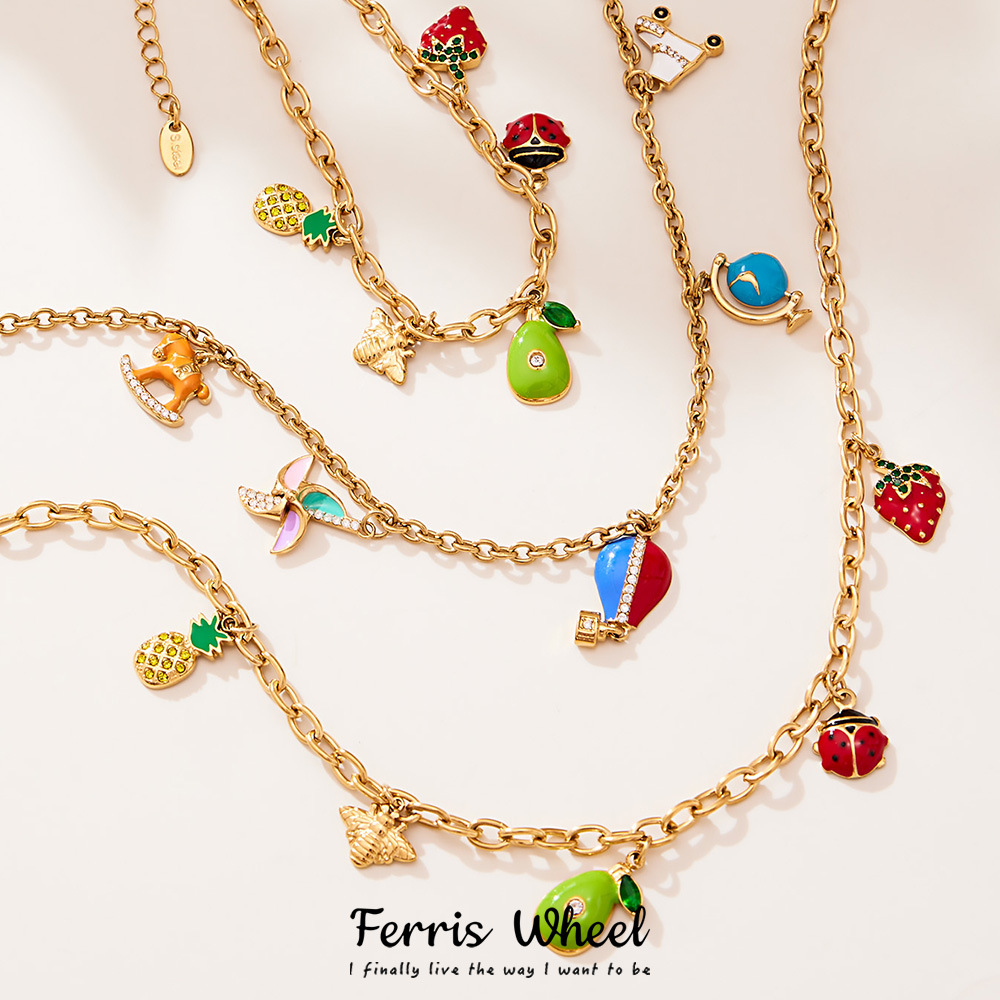 Ferris Wheel Stainless Steel Oil Dripping Fruit Zircon DIY Pendant Clavicle Chain Bracelet Ring Fashion Accessible Luxury Suit for Women