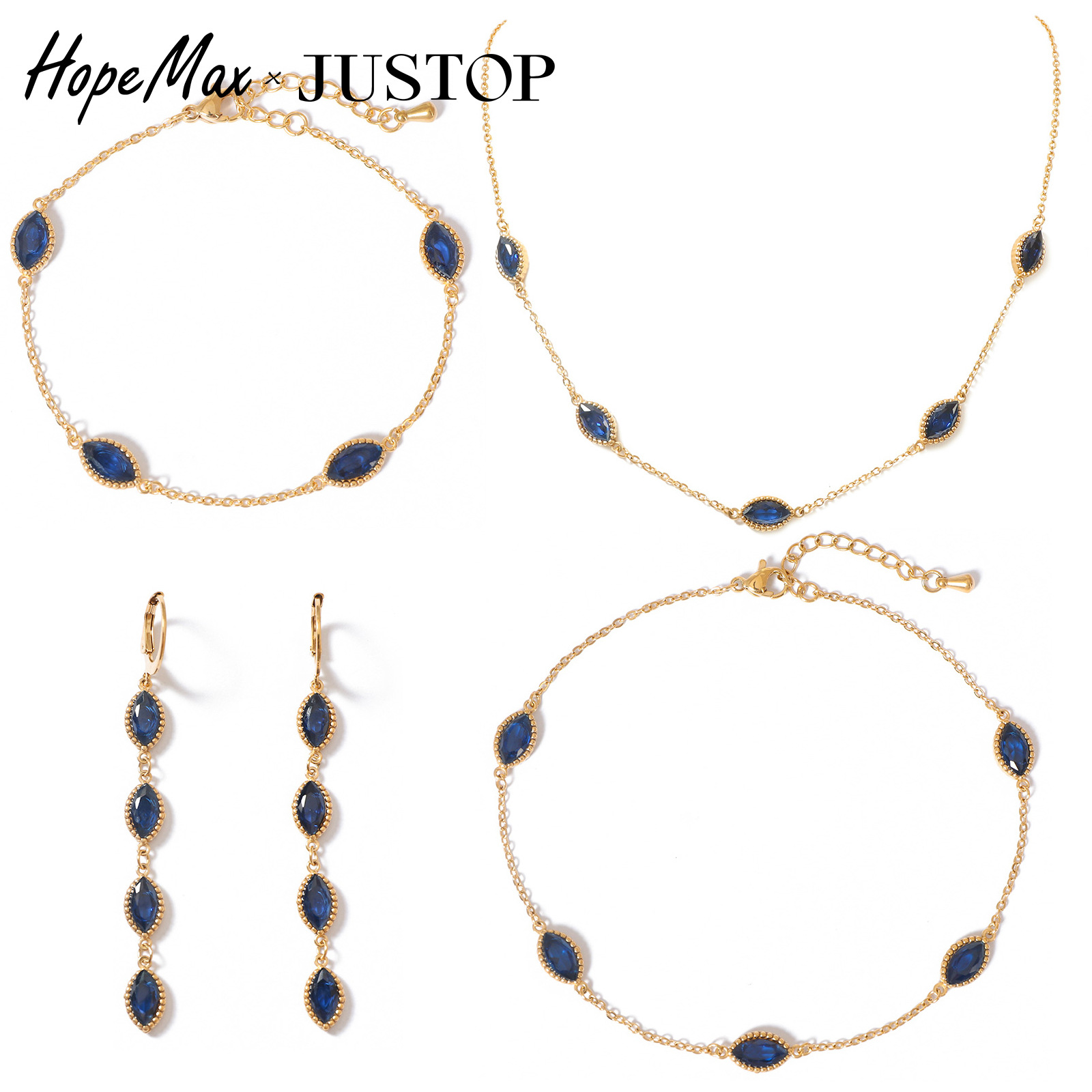 Justop European and American Retro Diamond-Shaped Zircon Tassel Earrings Blue Diamond Necklace Simple Bracelet Set