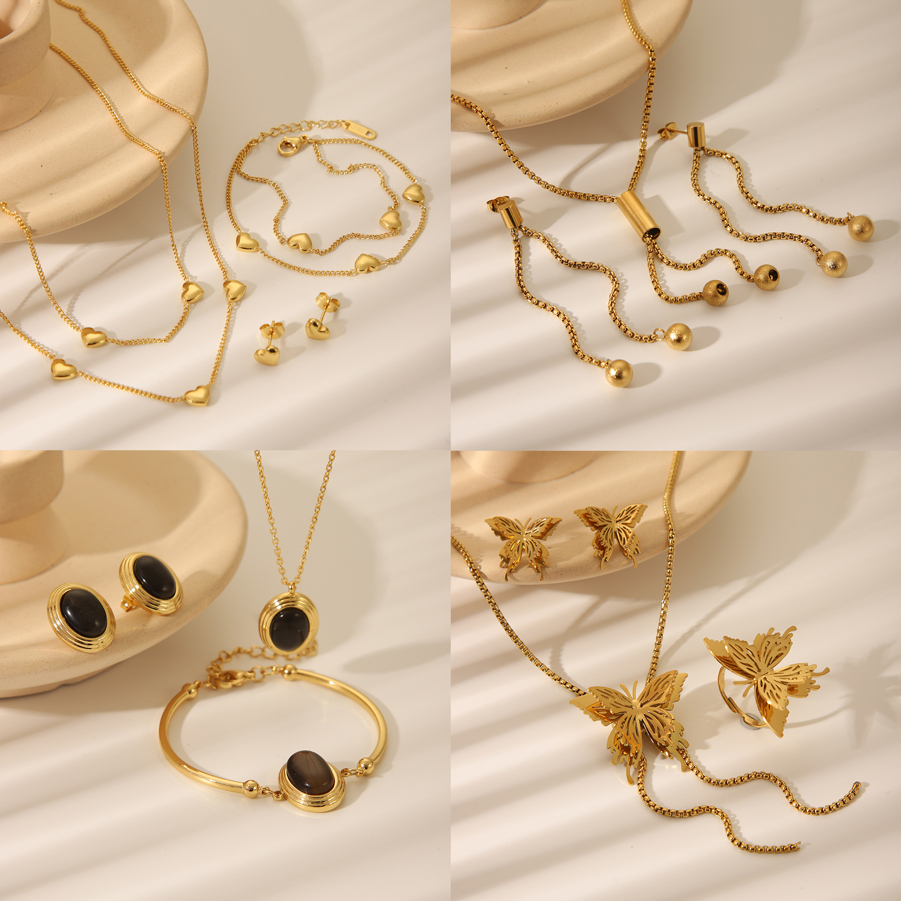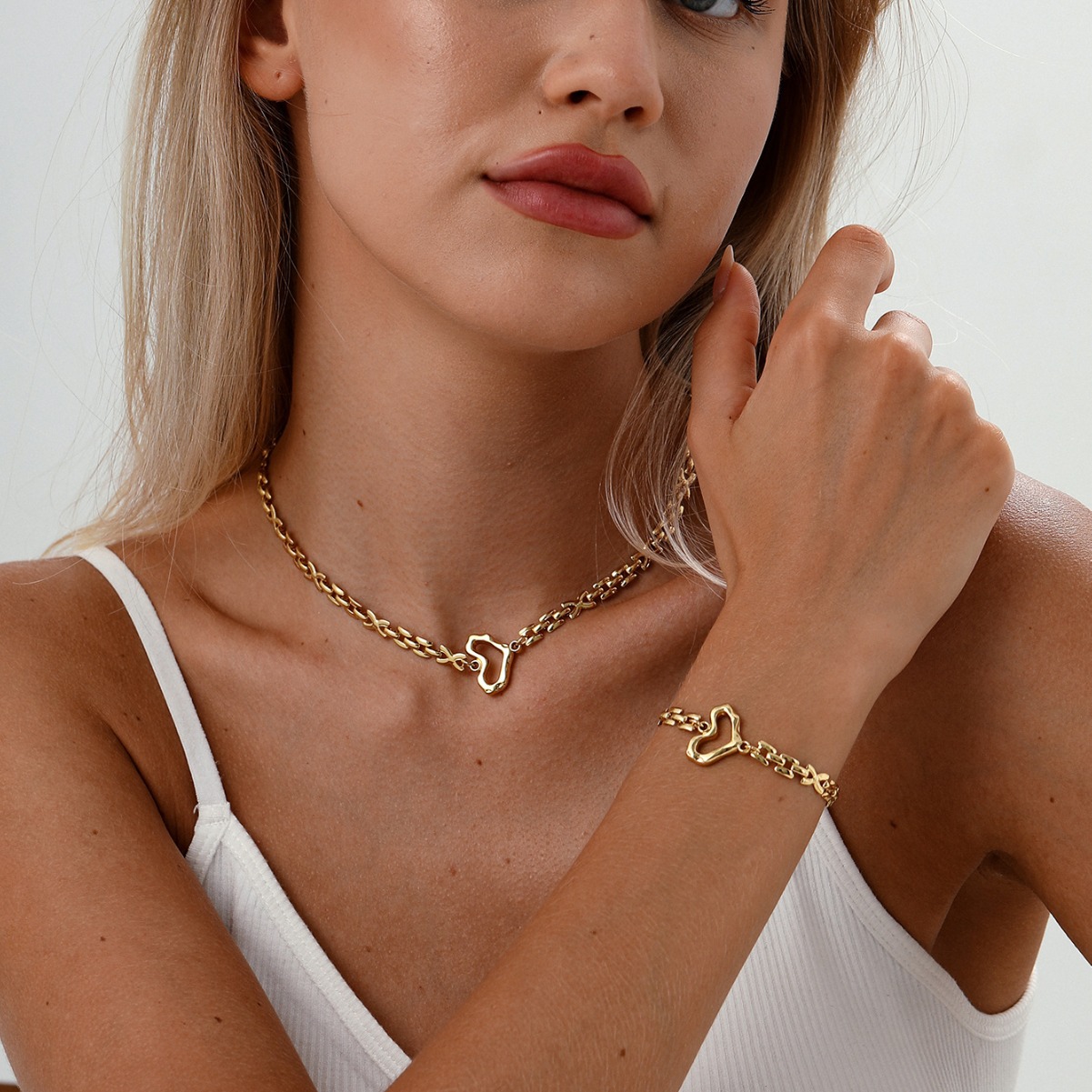 European and American New Titanium Steel Heart Necklace Women's Fashion Bracelet 18K Gold Plated Light Luxury Elegant Jewelry suit