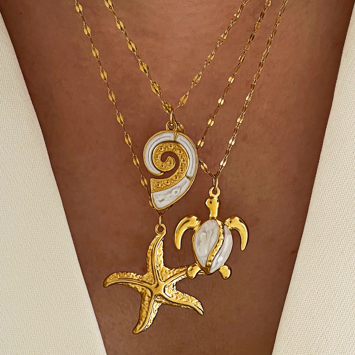 Steel Titanium Cross-Border Summer European and American Fashion Ocean Style Starfish Shell Pendant Women's Necklace Set Beach Vacation