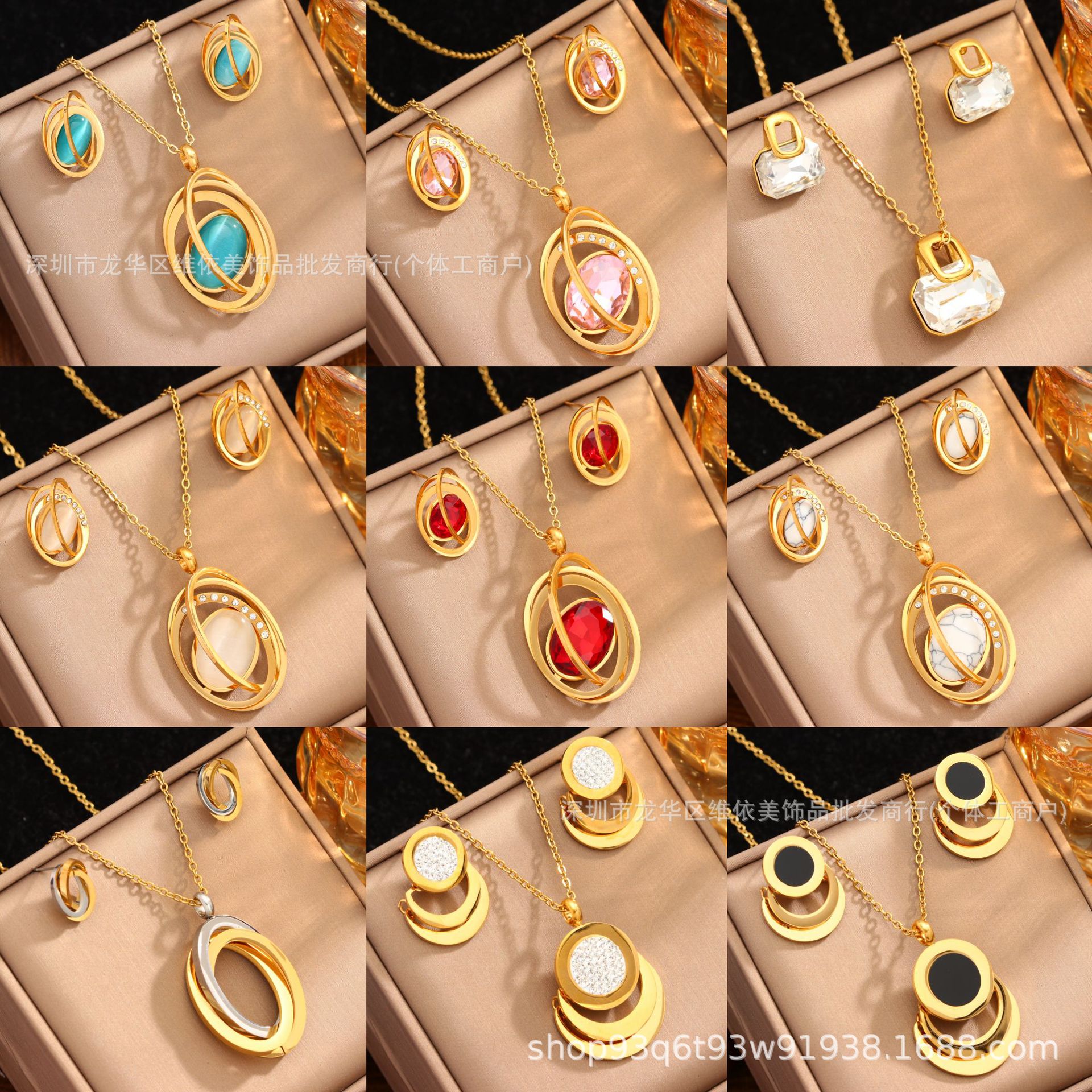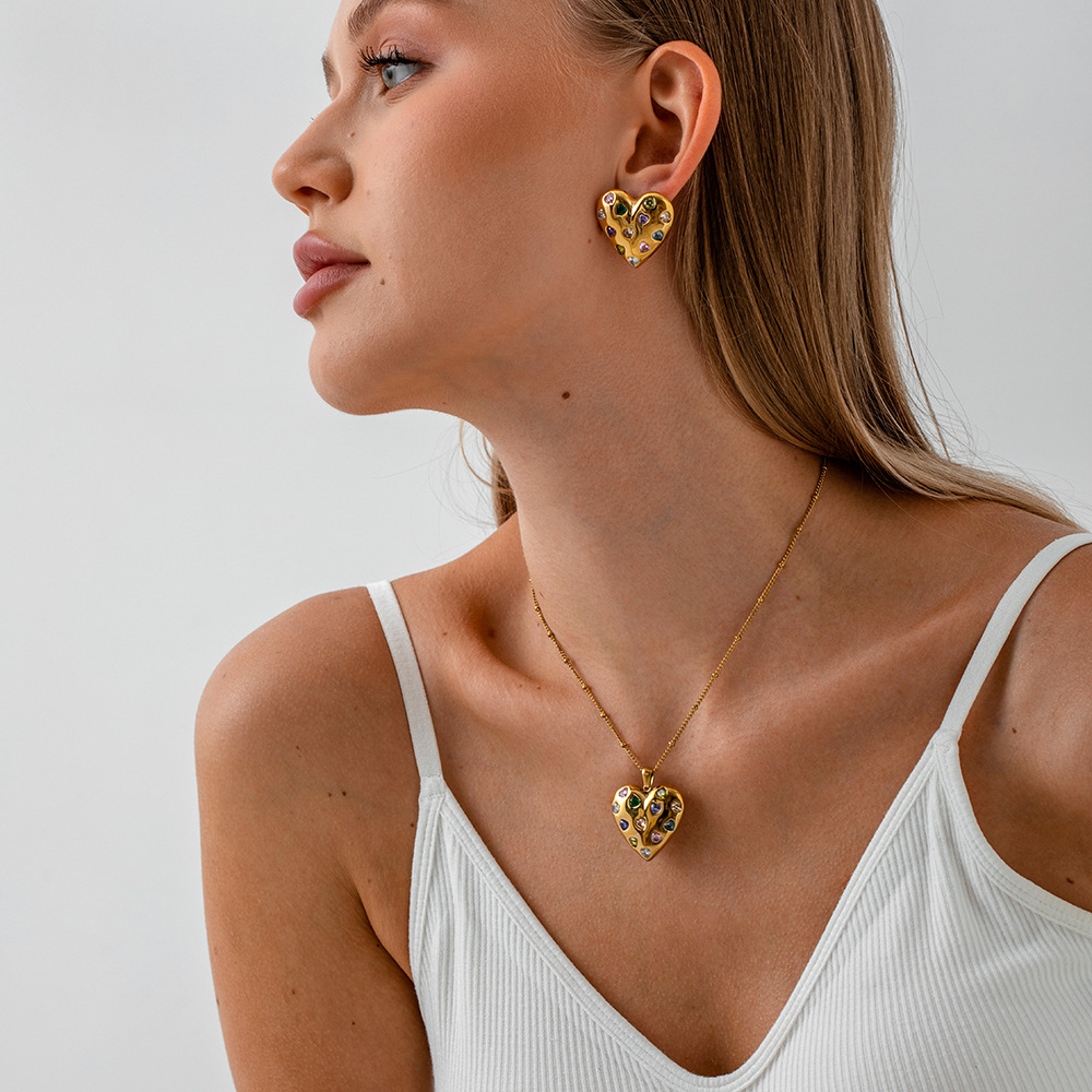 Taina European and American Stainless Steel Necklace Accessible Luxury High-End Heart Natural Stone Inlaid Earrings Necklace Jewelry Set