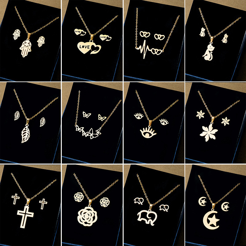 European and American Stainless Steel Earrings and Necklace Set Cross-Border Geometric Cross Palm Eyes Rose Pendant Jewelry