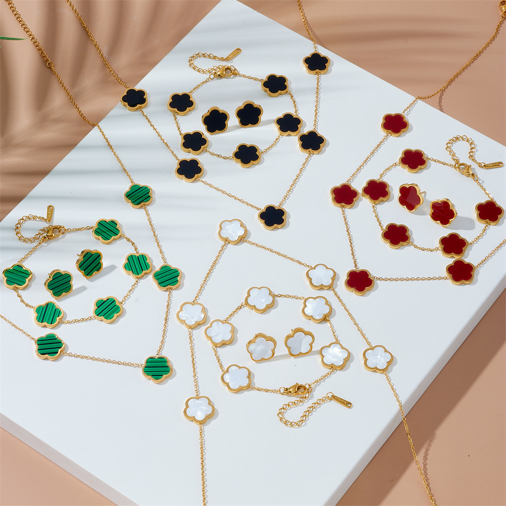 Five petal flower titanium steel stud earrings bracelet necklace suit mother shell five leaf flower stainless steel jewelry suit do not fade women's