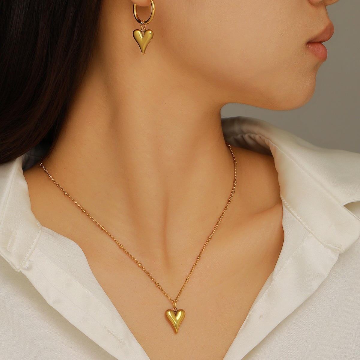 Europe and the United States new stainless steel heart-shaped fashion gold necklace earrings ladies jewelry suit wholesale cross-border exclusive