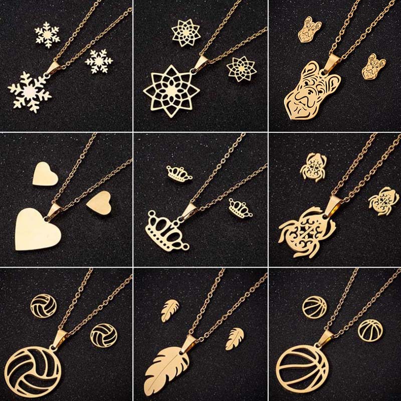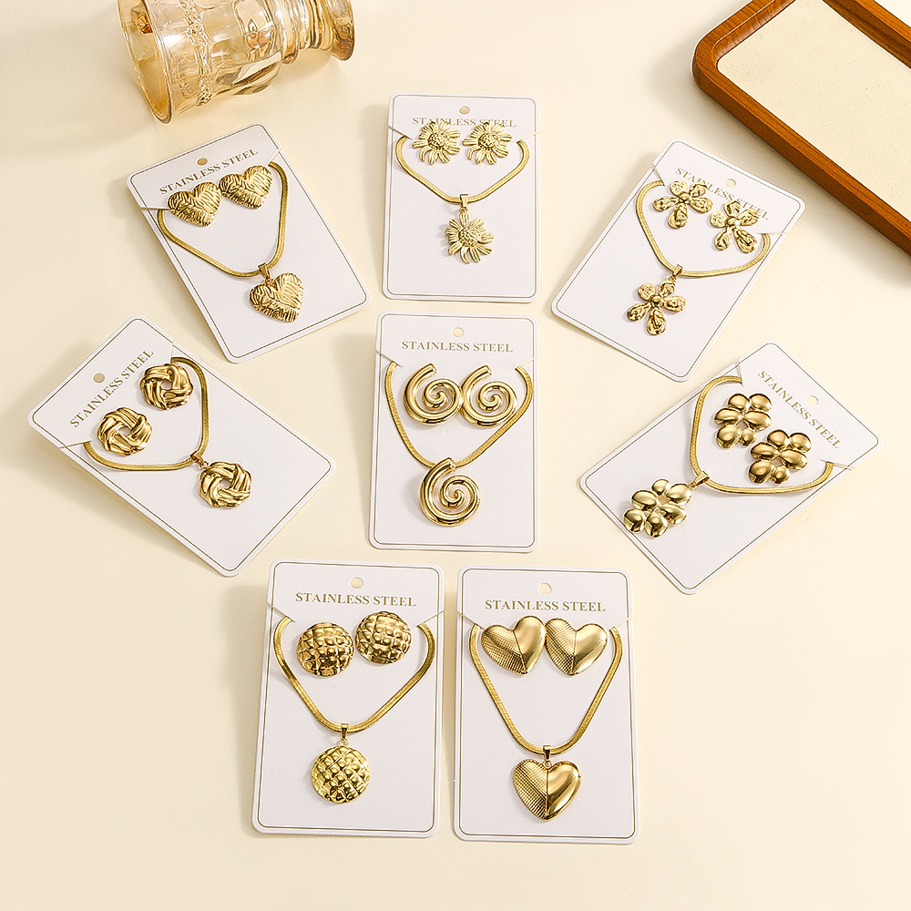 European and American Cross-Border Personalized New Stainless Steel Jewelry Sets, Various Light Luxury Trendy Stainless Steel Earrings and Necklace Sets