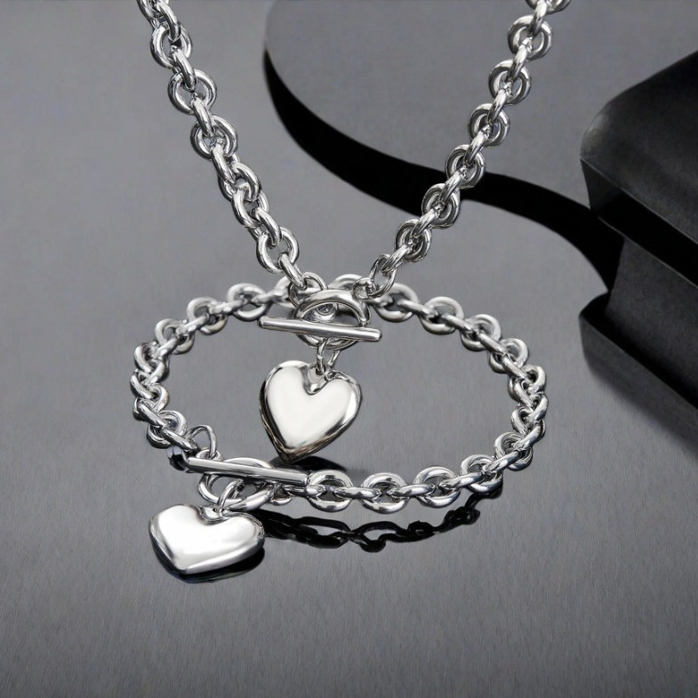 TEMU Hot Sale Stainless Steel Fashion Sweet Ins Style Women Heart Shape Pendant O Shape Necklace Bracelet Necklace suit