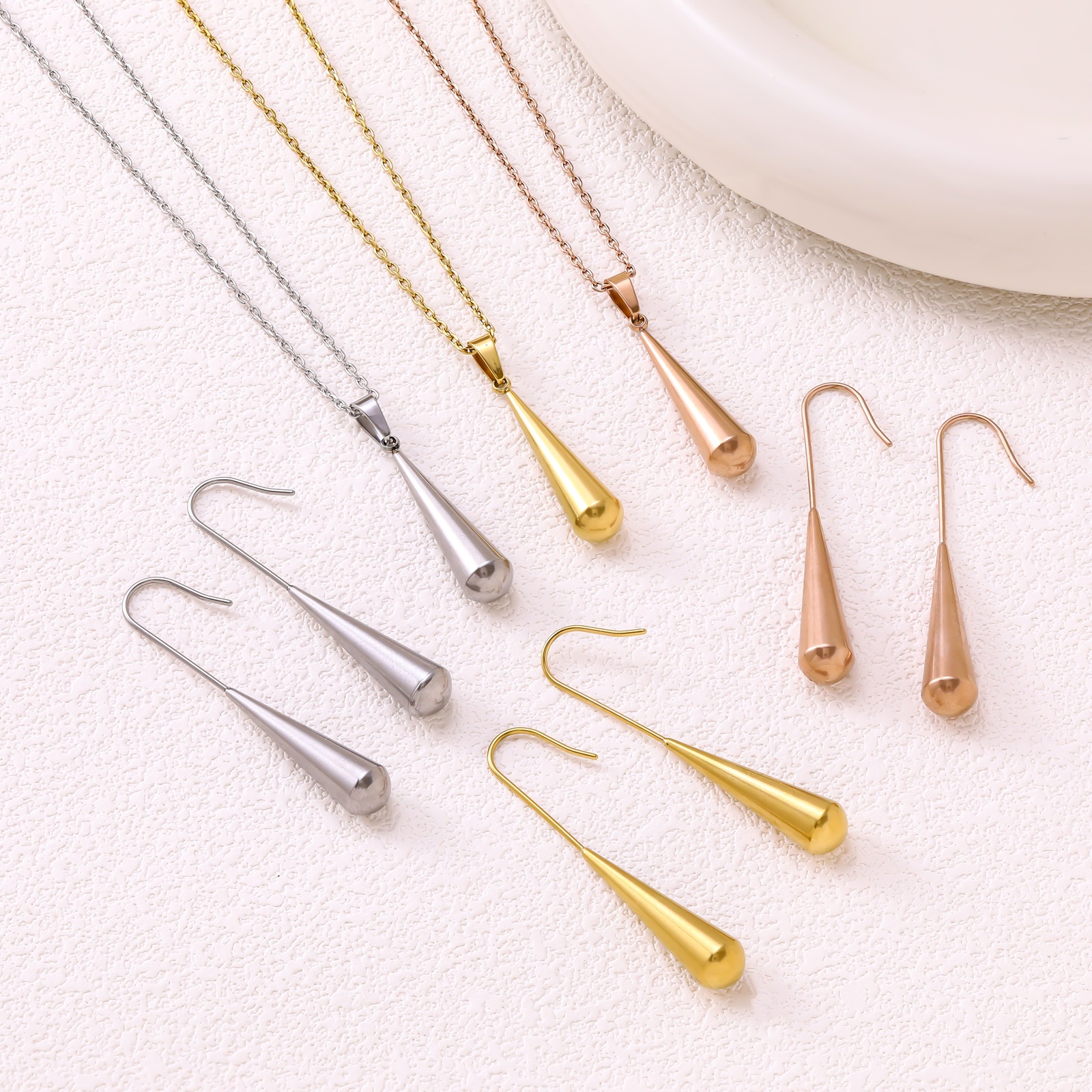 Light Luxury Water Drop Necklace Earrings Set Stainless Steel Jewelry Women's Japanese and Korean Style Simple Elegant Earrings Clavicle Chain Jewelry