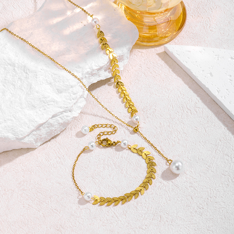 European and American Hot Selling Simple and Fashionable Adjustable Y-Shaped Wheat Ear Pearl Bracelet Necklace Jewelry Set Wholesale