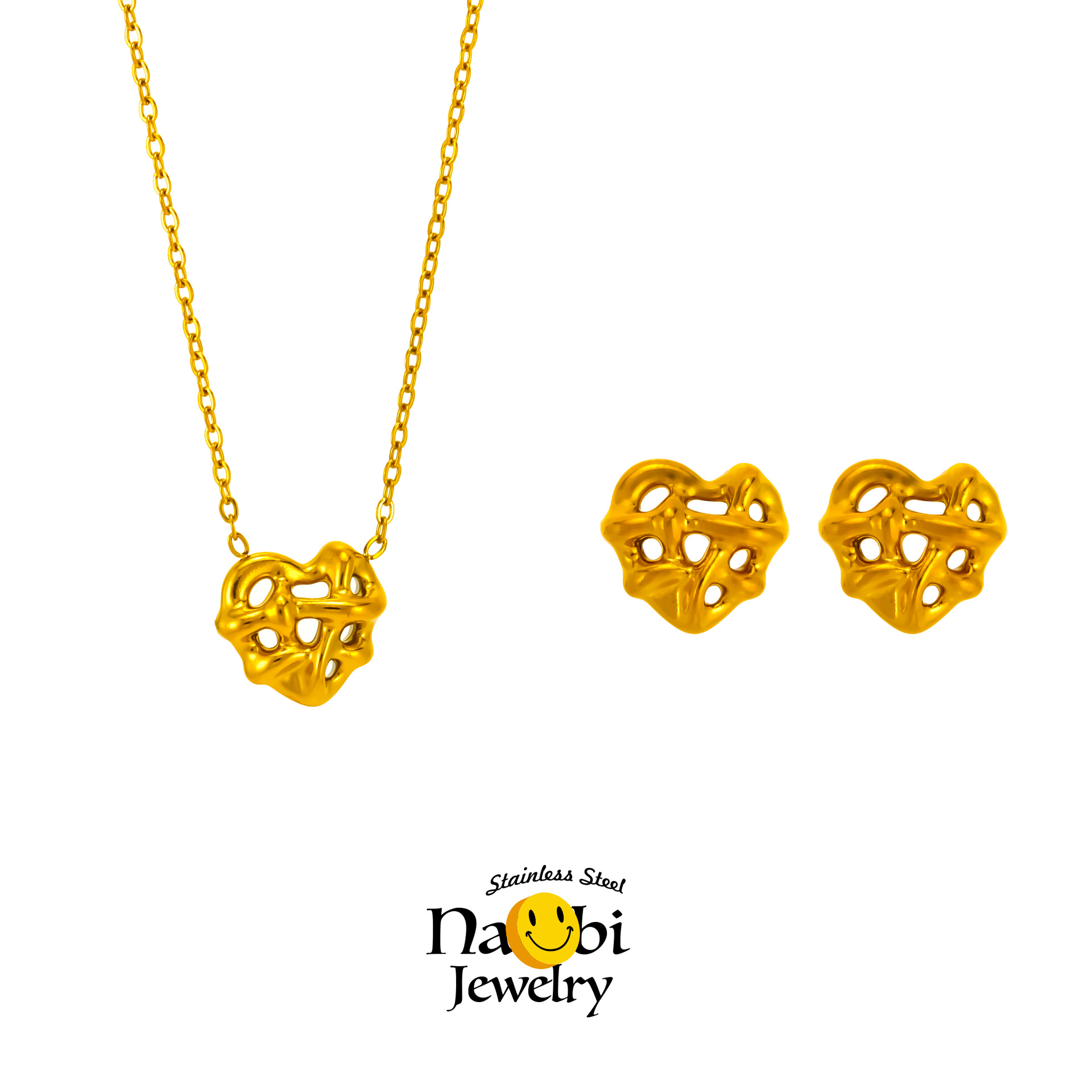 Heart-Shaped Pendant Necklace with 18K Gold-Plated Titanium Steel, Korean and Japanese Ins Style, Versatile Earrings Jewelry Set