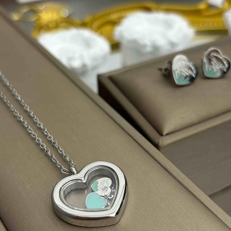 Korean and Japanese Popular Stainless Steel Necklace and Earring Set Fashion Versatile Heart Pendant Sweet Fresh Simple Style Jewelry