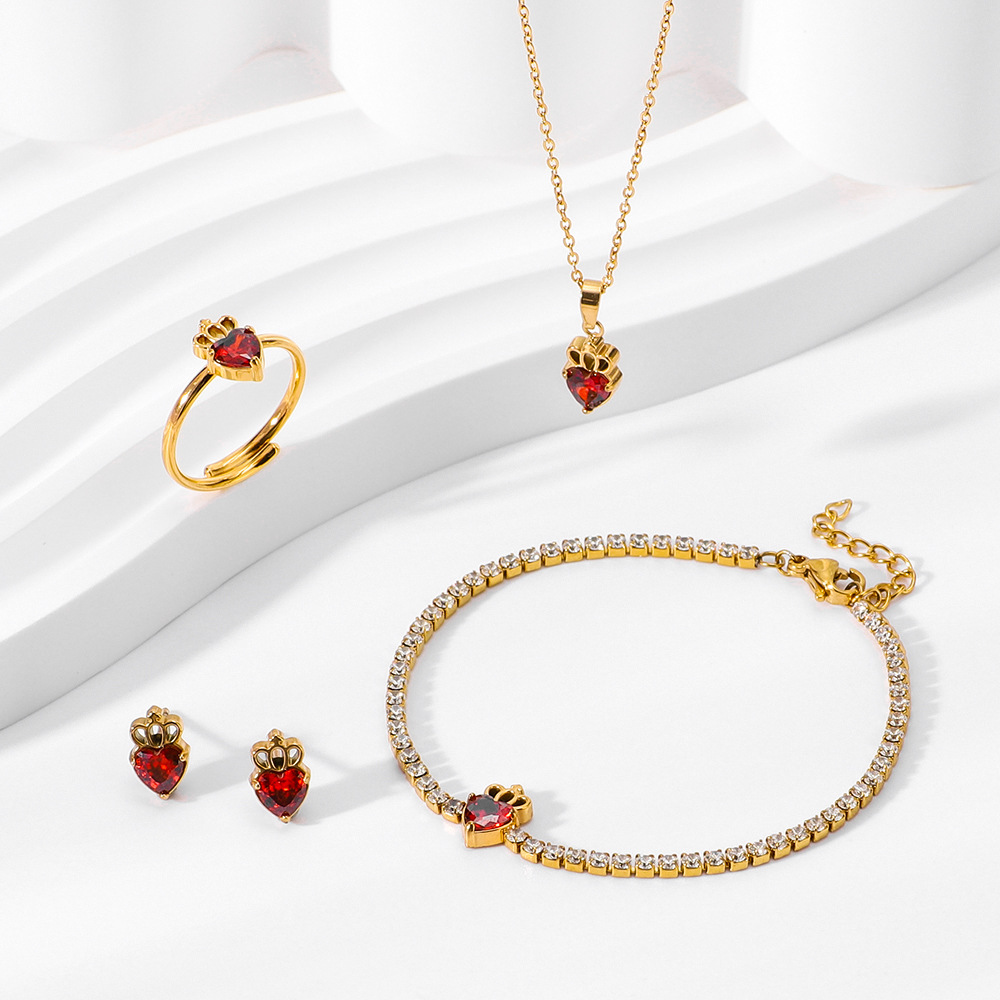 European and American Hot-Selling Titanium Steel Inlaid with Peach Heart Zircon Jewelry Set for Women, Accessible Luxury and High-End Stainless Steel Jewelry Set