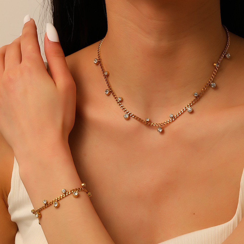Cross-border Hot Sale Light Luxury Irregular Multiple Round Zircon Pendant Niche Titanium Steel Waterproof Color Preservation Necklace Bracelet suit