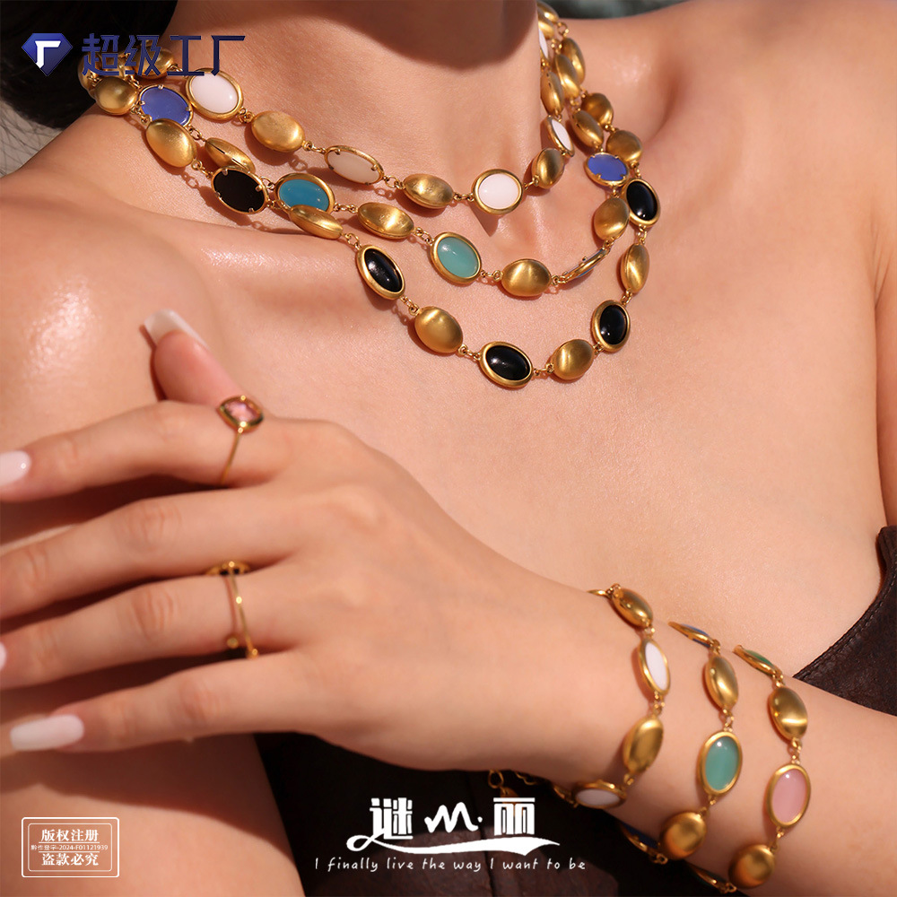 Mili Natural Oval Opal Necklace Bracelet Earrings Stainless Steel 18K Real Gold Temperament Luxury Socialite Set