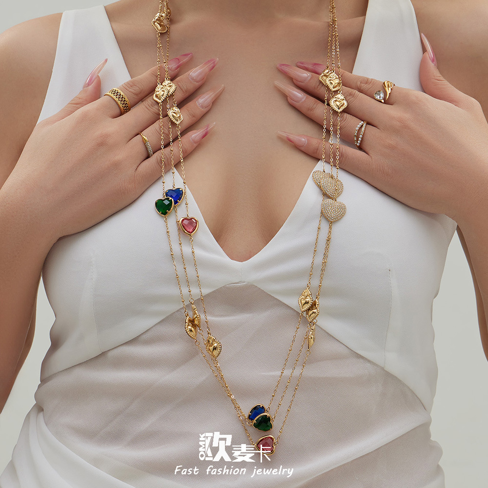 Stainless Steel Colorful Resin Edge Necklace 5A Zircon Heart Bracelet Dopamine Jewelry Set Plated with 18K Real Gold