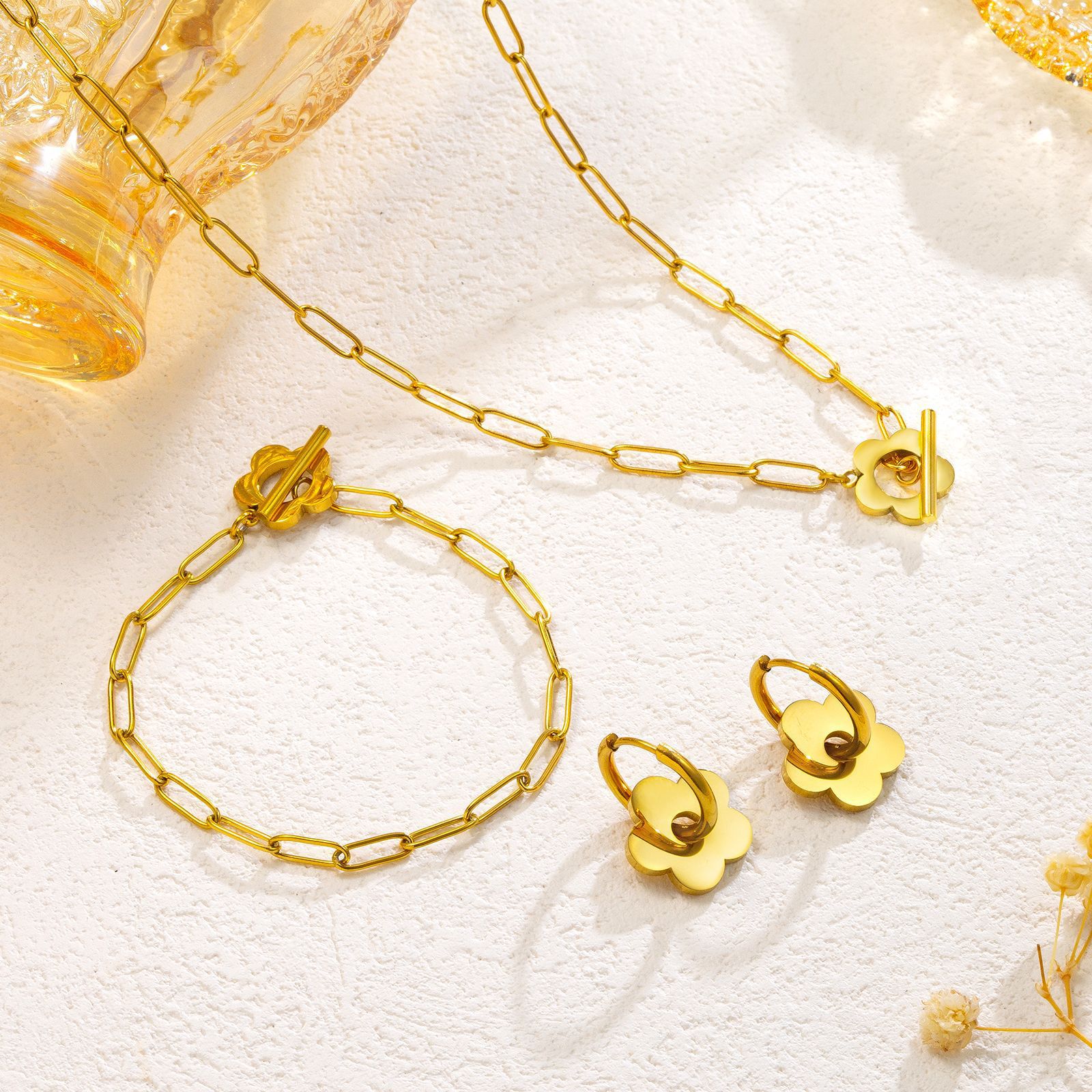 Korean and Japanese Ins Style Fresh Geometric Plum Blossom Ot Clasp Personality Thick Chain Necklace Simple Bracelet 3-Piece Jewelry Set for Women