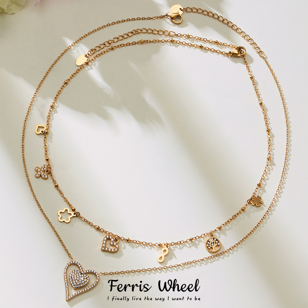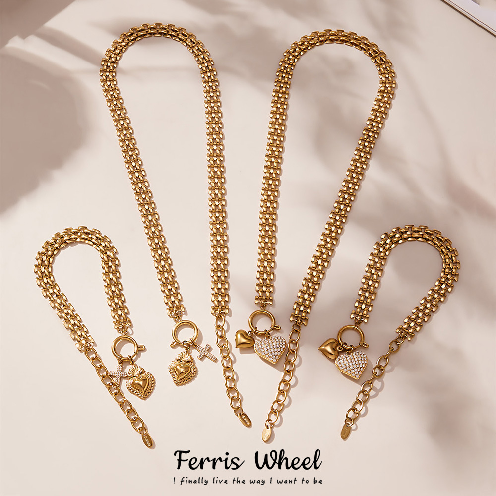 Ferris Wheel European and American Fashion Strap Chain Heart Diamond Tassel Pendant Necklace Bracelet Women's Fashion Jewelry Set