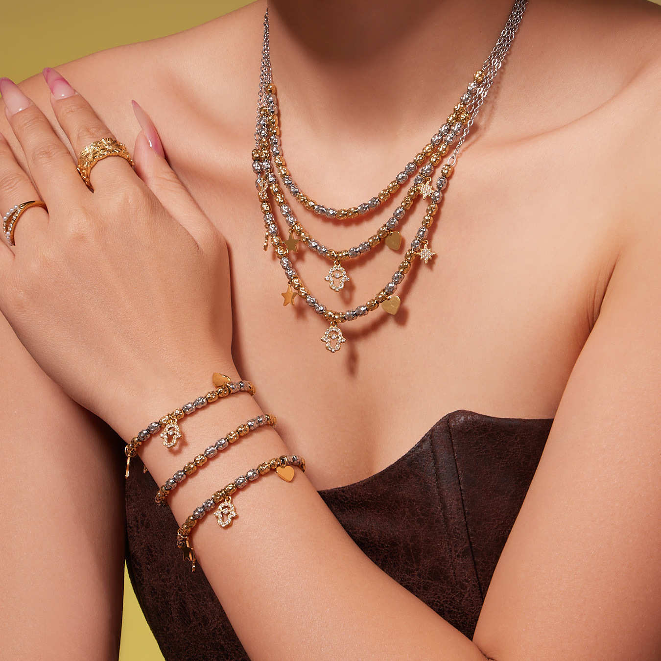European and American Angel Eyes Men's and Women's Golden Exquisite Clavicle Chain Unique Accessible Luxury Design Set Necklace Bracelet