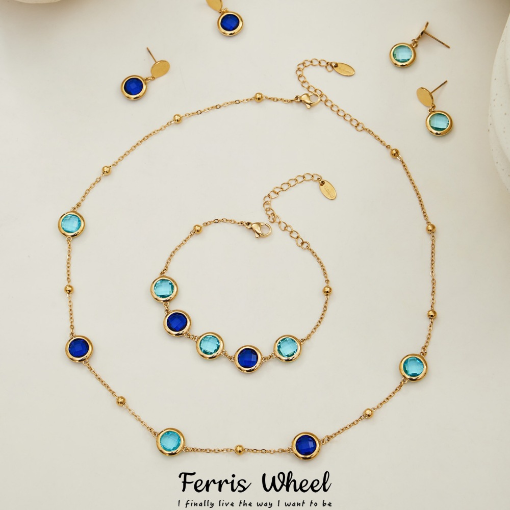 Round Faceted Glass Stone Necklace Earrings Bracelet Ins European and American Fashion Niche Design Versatile Jewelry Set