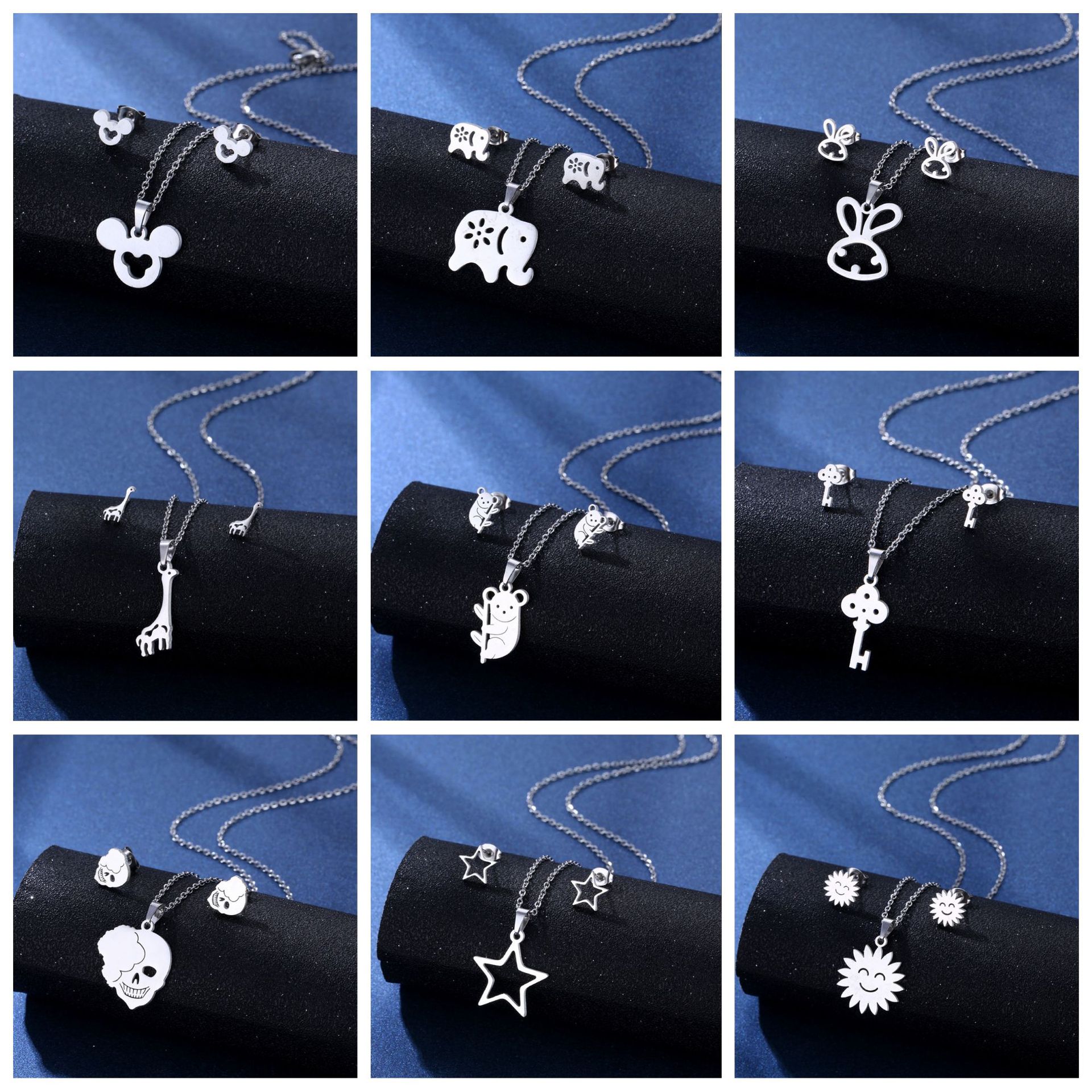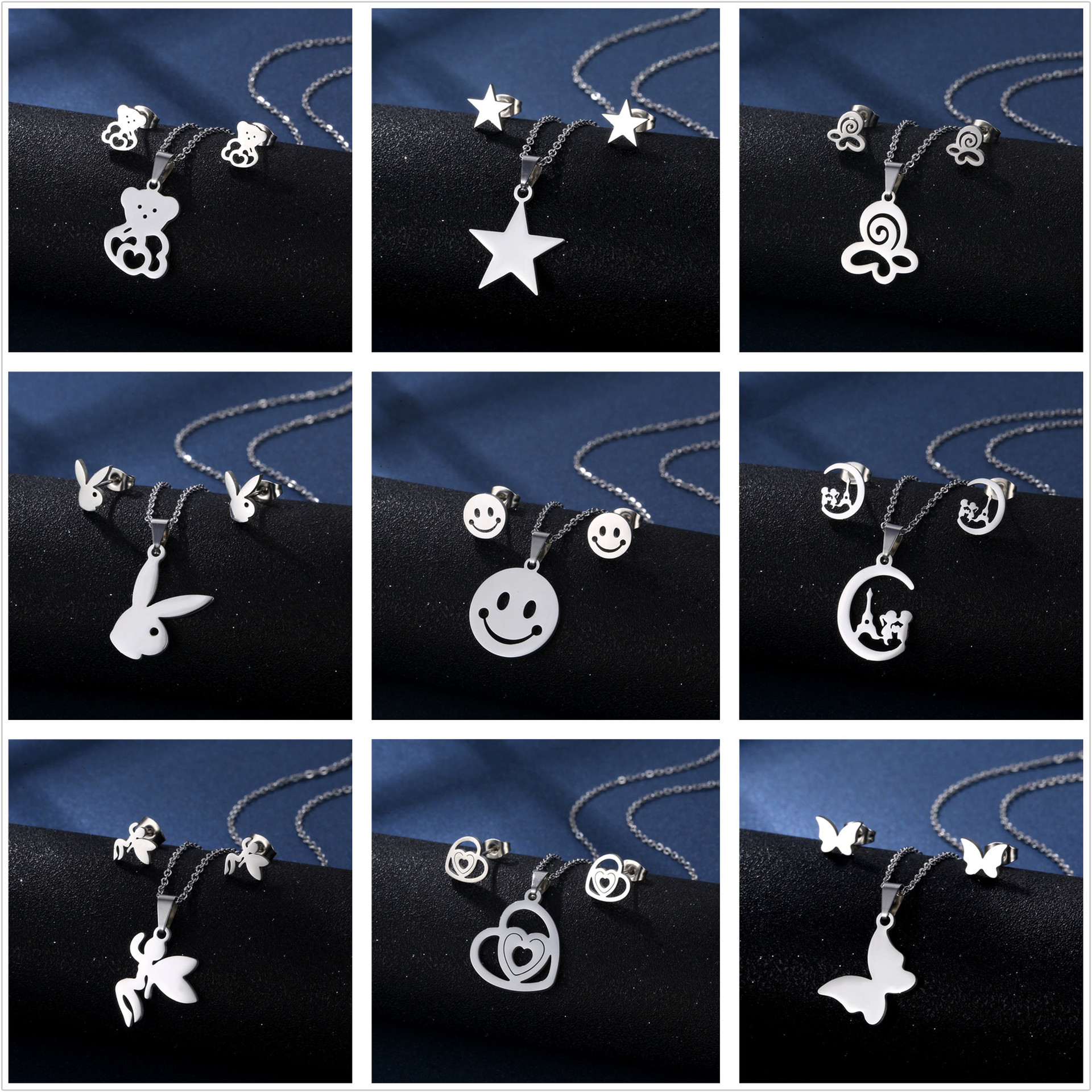 Stainless Steel Necklace Earrings Set Wholesale Cross-border South American Fashion Geometric Simple Love Bear Two-piece Set for Women