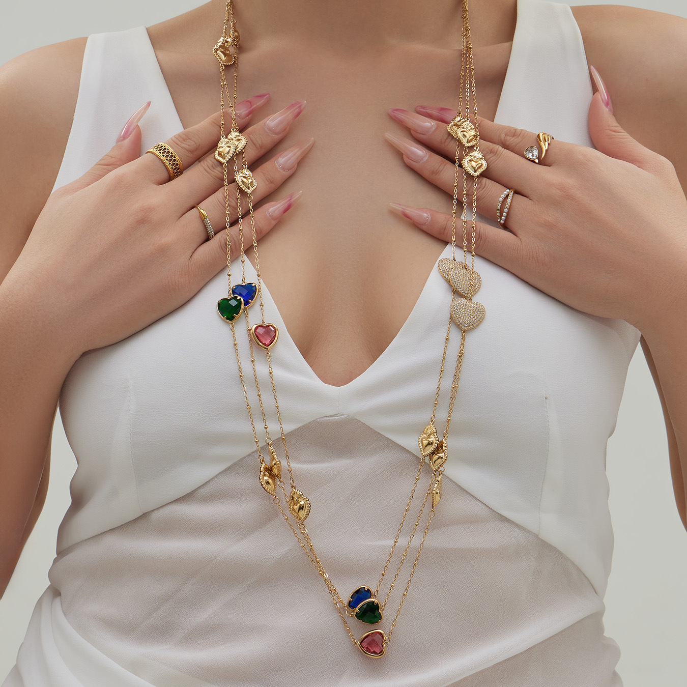 Stainless Steel Super Flash Heart Glass Stone Pendant Earrings Heart Full Diamond Zircon Necklace Plated 18K Gold Jewelry Set