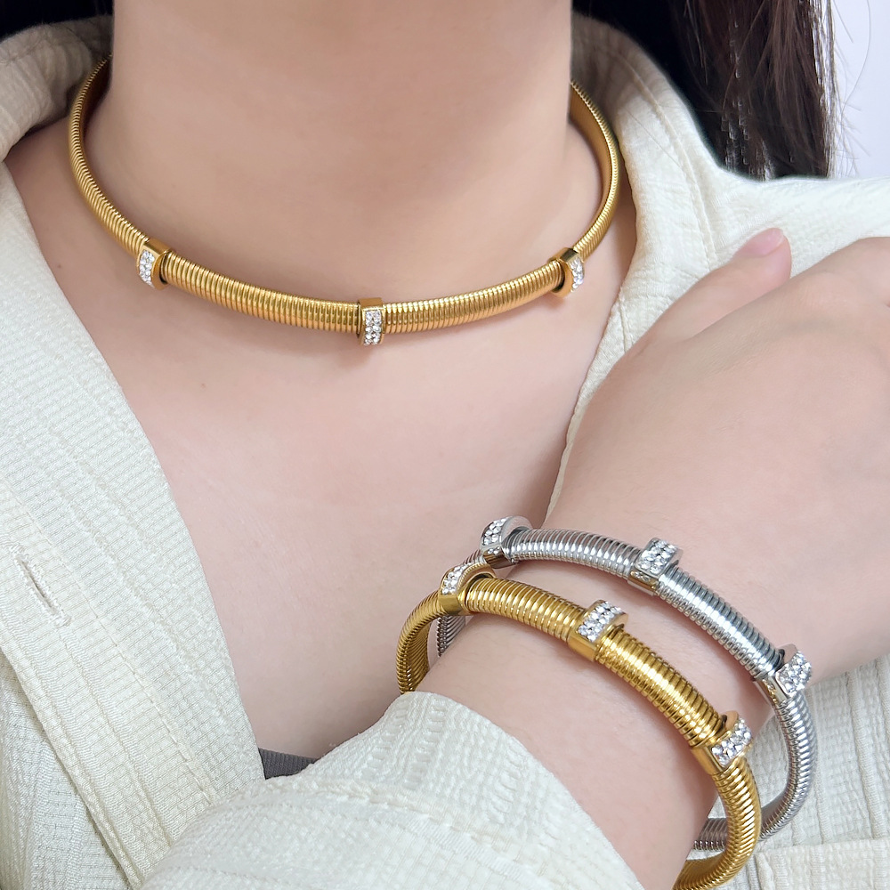 Titanium steel trend personality suit elastic thread rhinestone bracelet collar fashion European and American opening collar bracelet wholesale