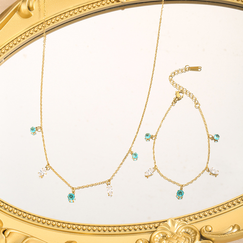 Cross-border Hot Selling Stainless Steel Horse Eye Zircon Necklace 18K Gold Female Temperament All-match Clavicle Chain Teardrop Gem suit
