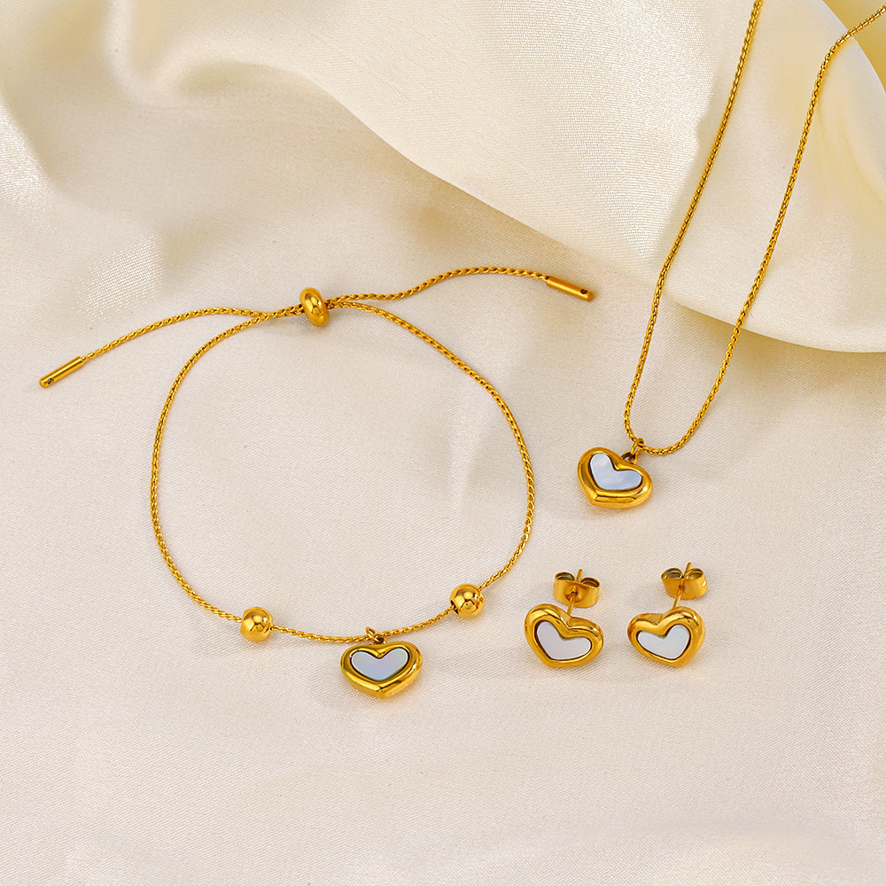 European and American Fashion Shell Love Jewelry Set Light Luxury Niche Simple Heart-shaped Pendant Collarbone Chain Women's All-match Accessories