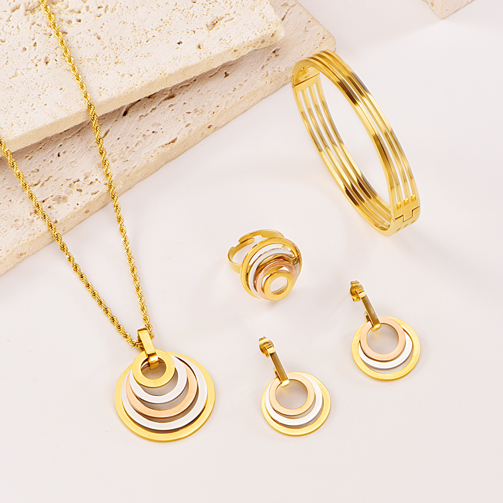 European and American Ins Style Stainless Steel Set New Fashion Stylish Geometric Ring Hoop Necklace Earrings Bracelet Set
