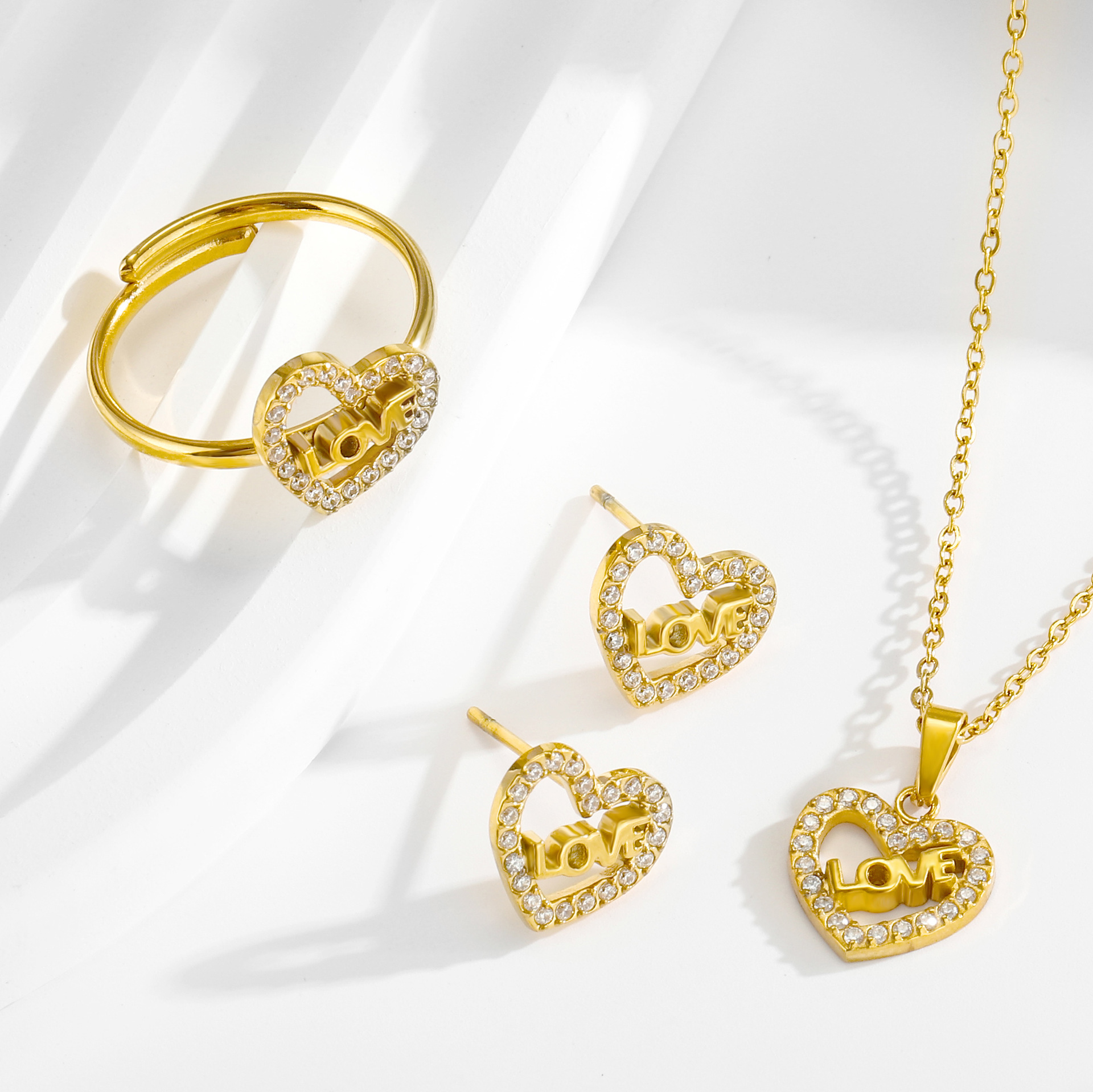 Titanium Steel Love Love Light Luxury Elegant Gorgeous Diamond Necklace Women's All-match Clavicle Chain Stainless Steel Jewelry suit