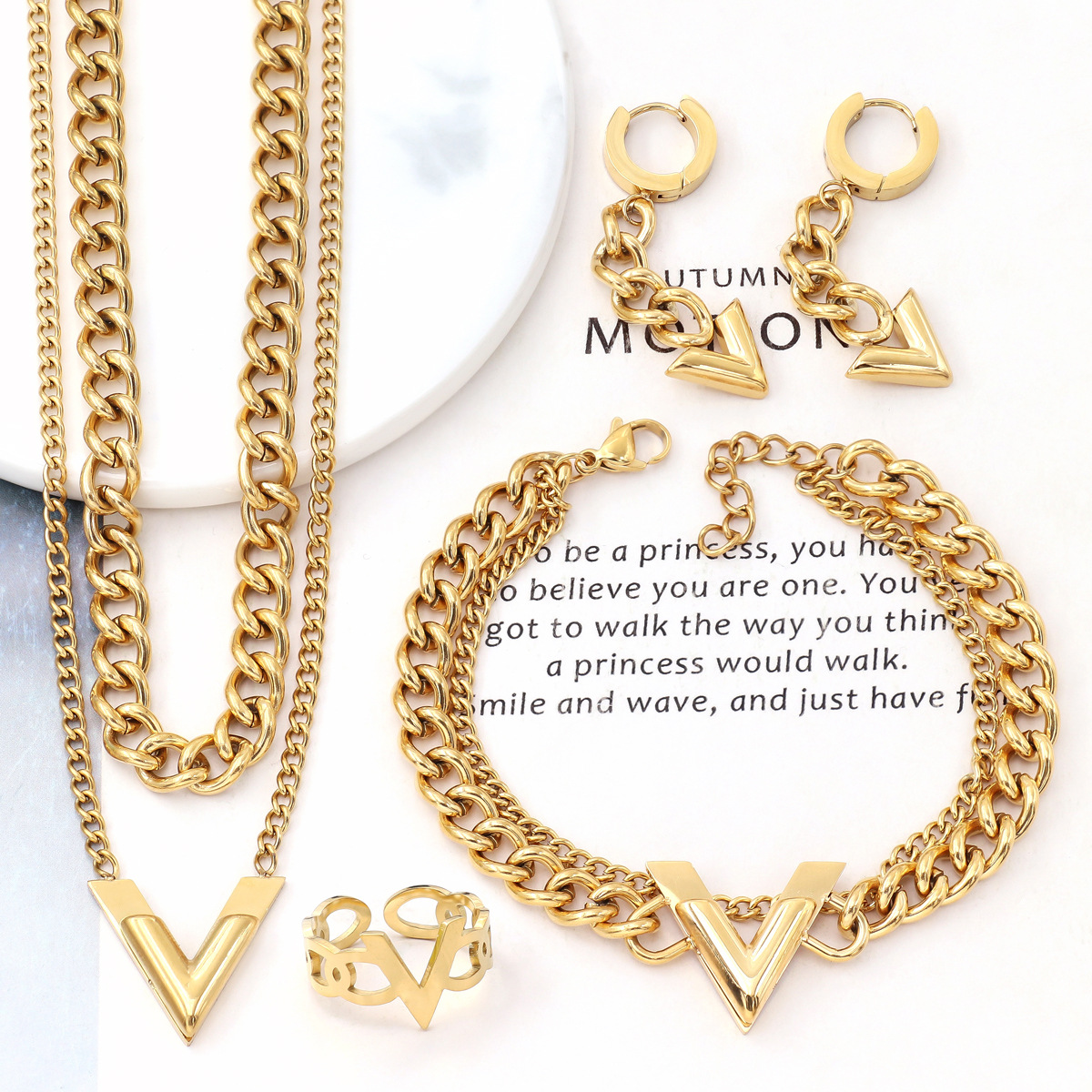 Stainless steel chain four-piece casting V-shaped female jewelry suit wholesale