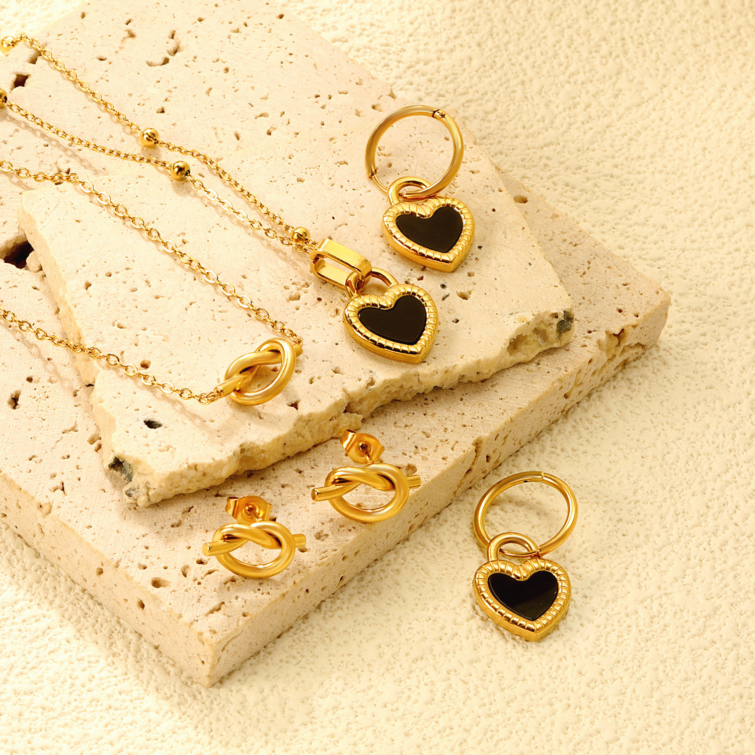European and American Hot-Selling Knotted Pendant Clavicle Chain Earring Set Ins Double-Sided Heart-Shaped Necklace Stainless Steel Jewelry Set