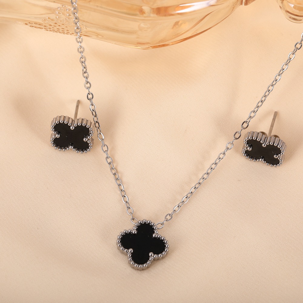 Four-leaf clover suit stainless steel jewelry explosion simple fashion five-leaf flower bracelet necklace earring jewelry two-piece set