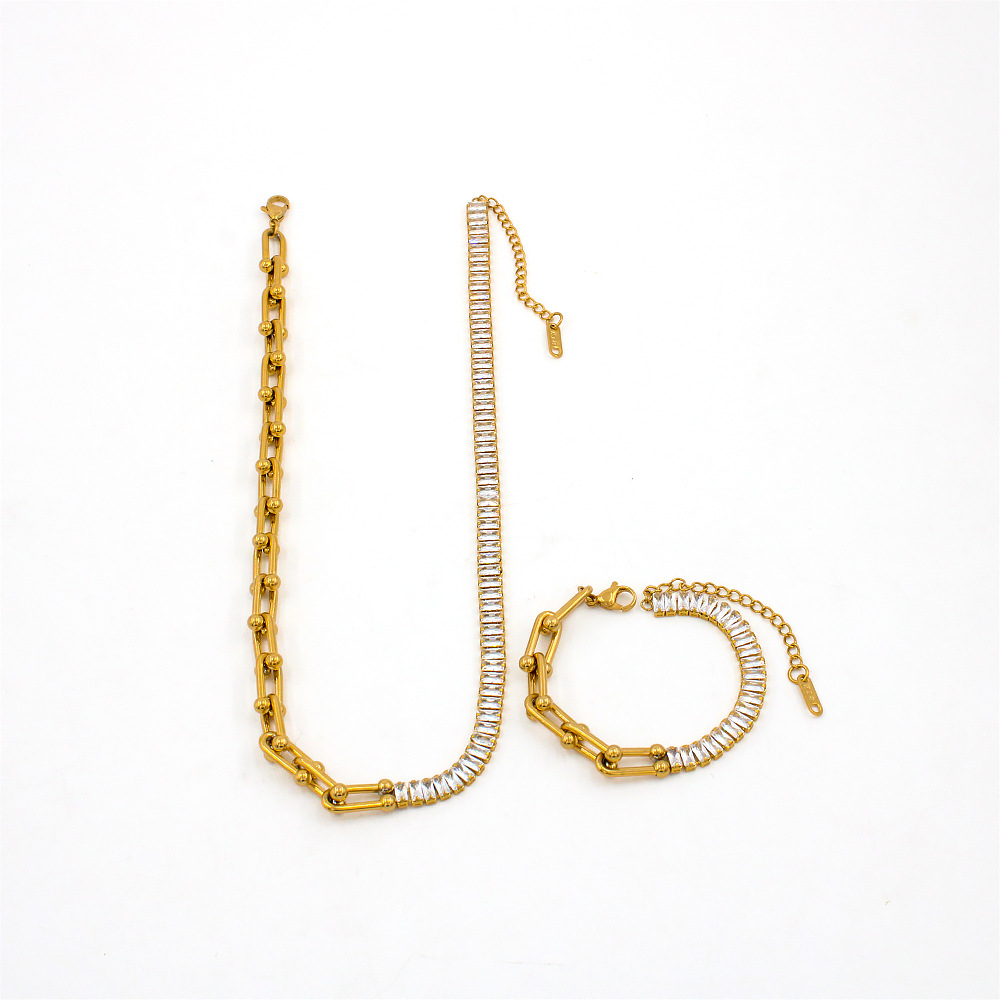 Creative Splicing Necklace Bracelet Set Horseshoe Chain Clavicle Chain U-Shaped Design Square Zircon Ys404