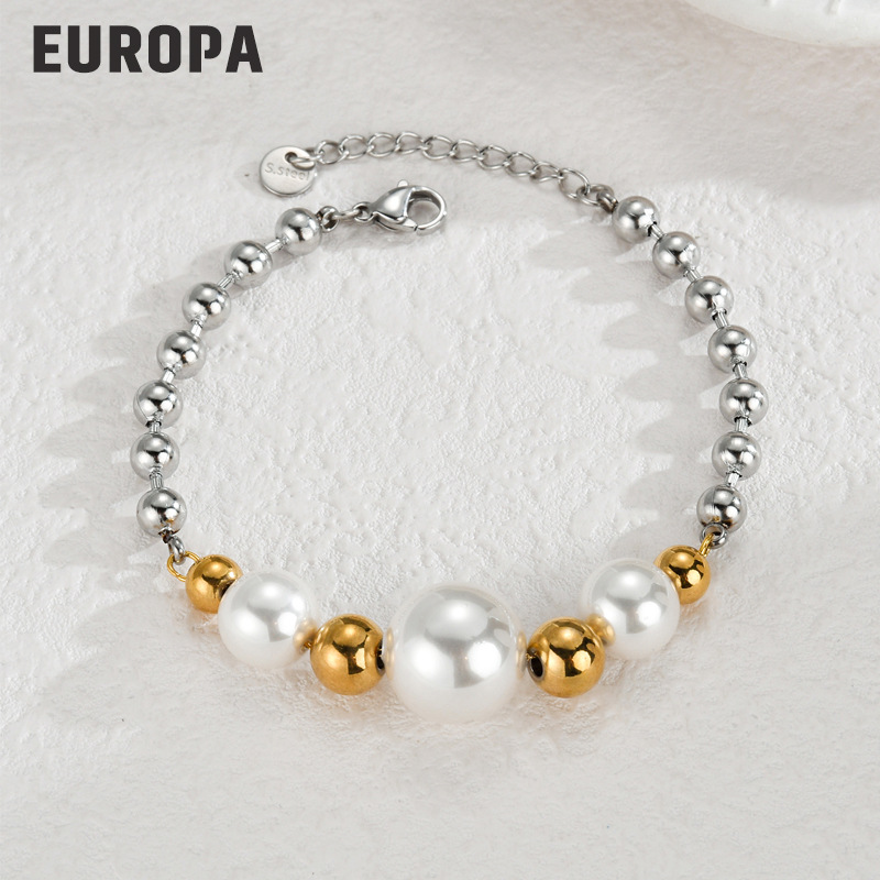 Amazon New Fashion Niche Design Two-color Pearl Bracelet Necklace Ins Style High-grade Stainless Steel suit