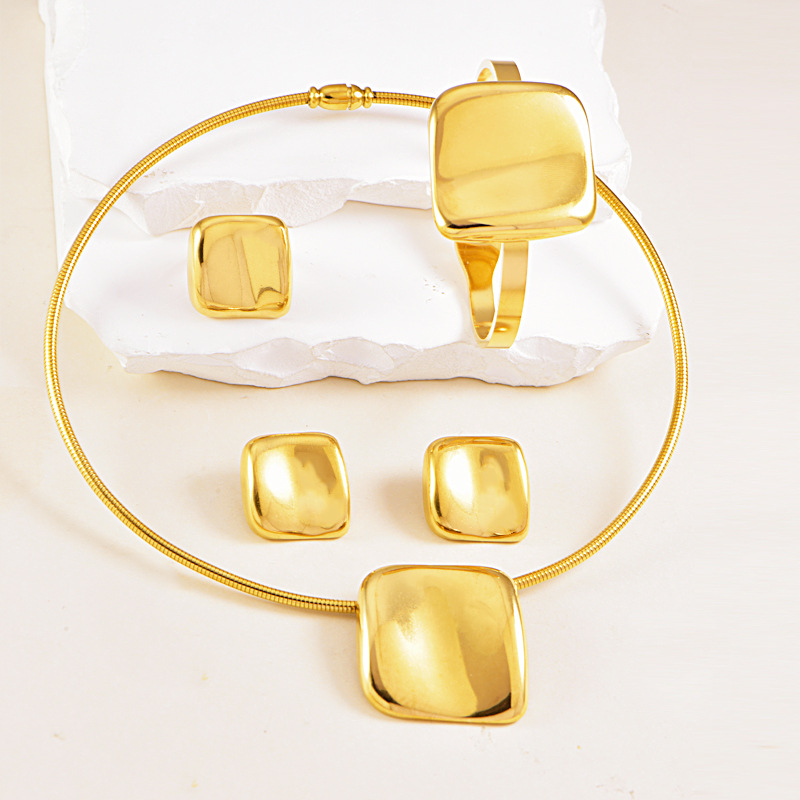 Europe and the United States exaggerated simple smooth geometric square stainless steel collar bracelet suit women light luxury Joker accessories wholesale
