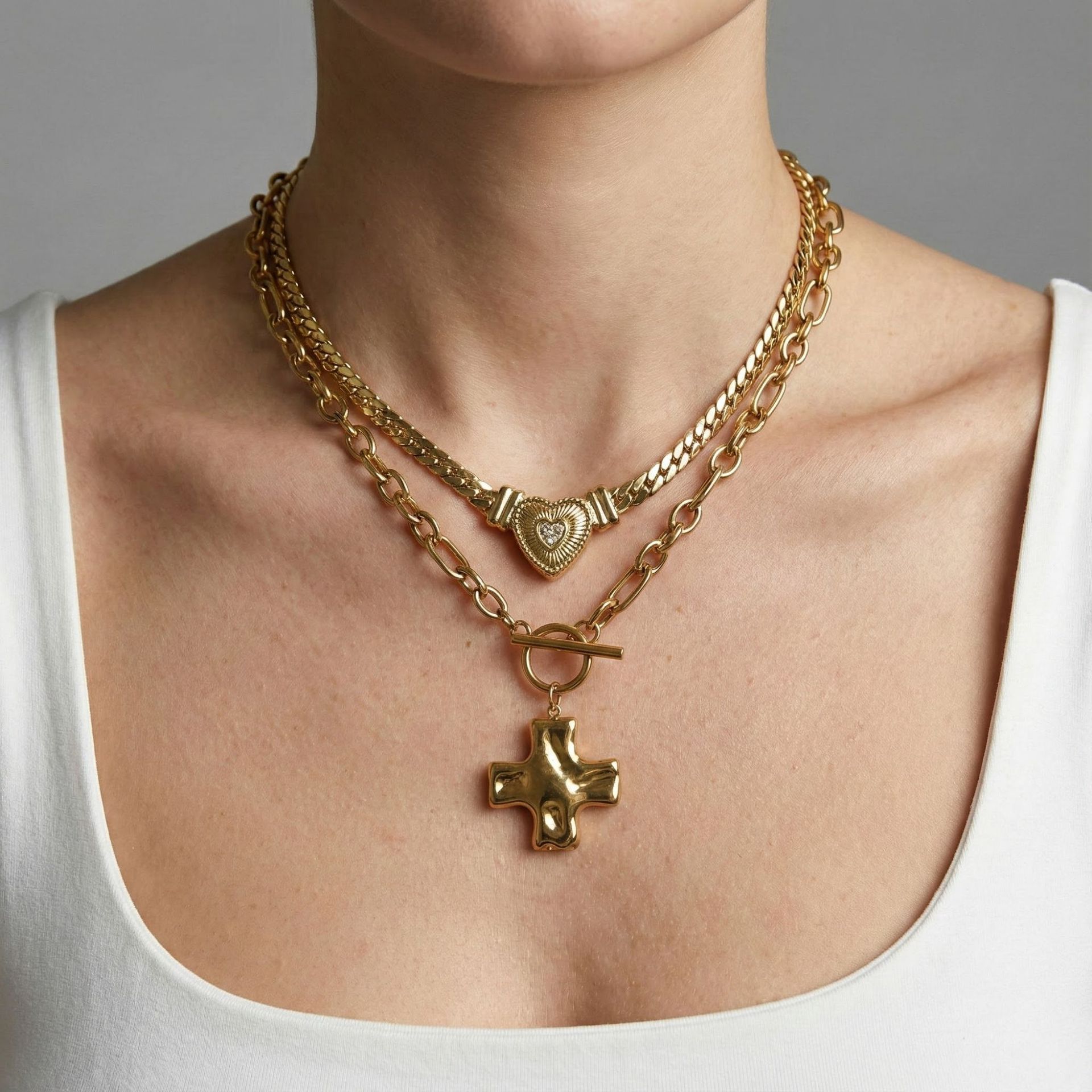 Gold Stainless Steel Fashion Retro Versatile New Hot-Selling Women's Necklace Set with Light Luxury Clavicle Cross