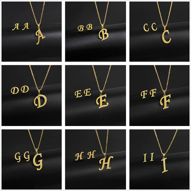 Titanium Steel Set Stainless Steel 26 Letter Necklace Women's Cross-Border Foreign Trade English Letters Non-Fading Clavicle Chain
