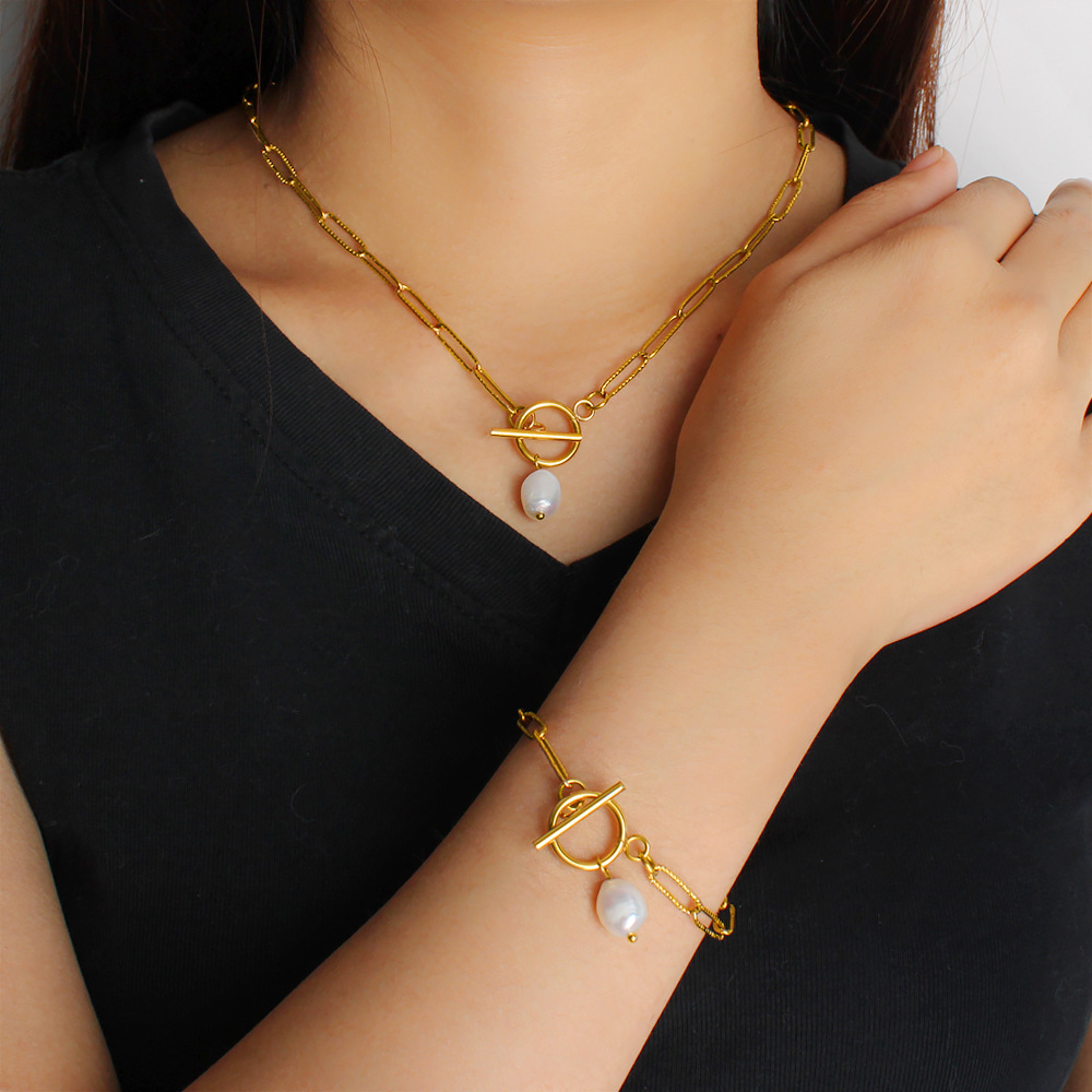 Light Luxury Elegant Retro Pearl Pendant Necklace Stainless Steel OT Buckle Design Sense Clavicle Bracelet European and American Style suit