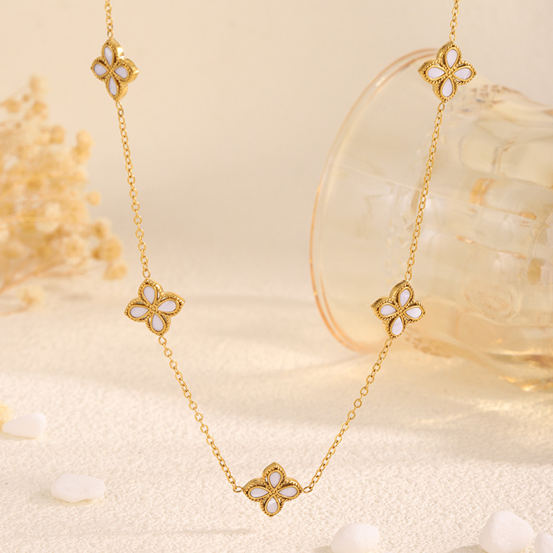 Cross-Border Light Luxury New White Diamond Four-Leaf Clover Titanium Steel Necklace Women's Fashion High-End Exquisite Five-Flower Clavicle Chain Set