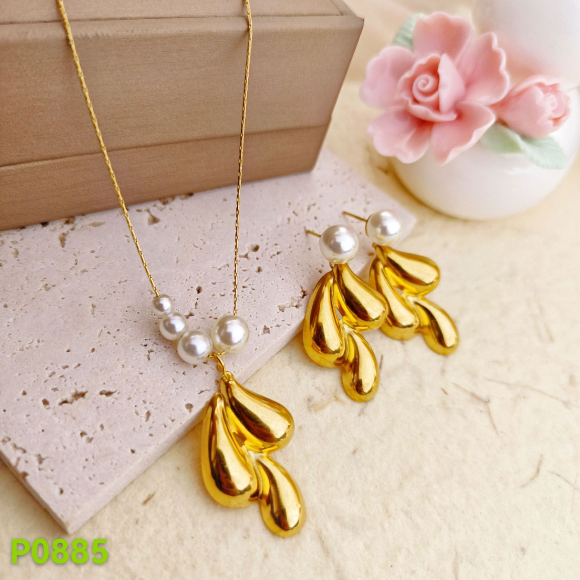 French-Style Light Luxury Water Drop Pearl Titanium Steel Earrings, Versatile and Unique Texture, High-End Necklace, Non-Fading Stud Earring Set