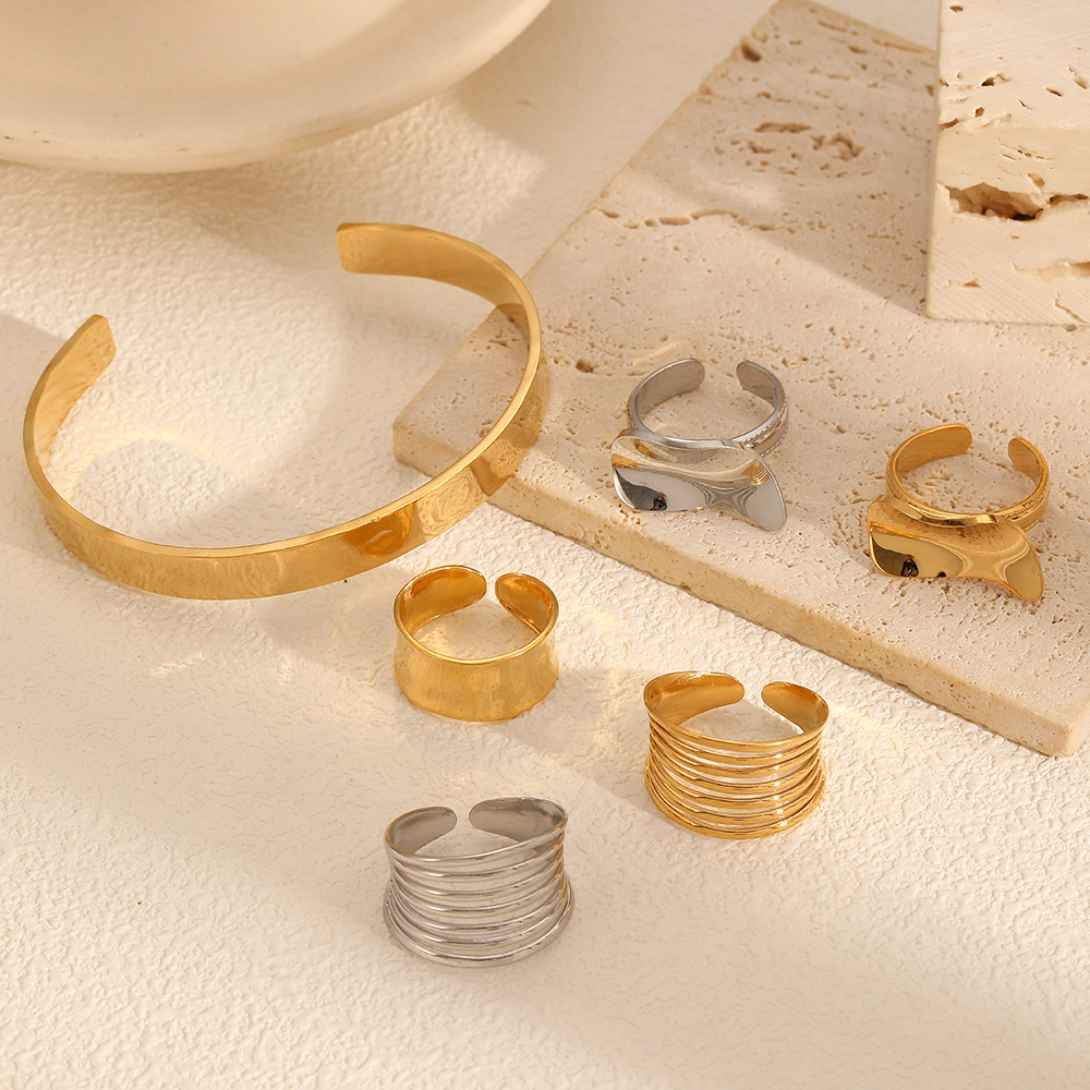 Cross-border geometric smooth stainless steel ring bracelet jewelry suit women's fashion niche design titanium steel earrings