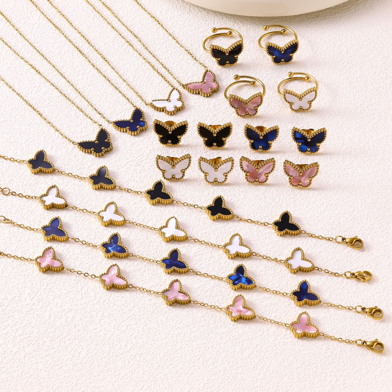Europe and the United States cross-border personality simple color butterfly accessories chain stainless steel bracelet earrings necklace jewelry suit