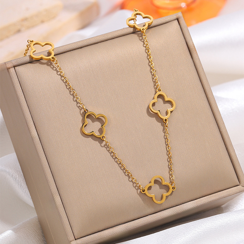 Cross-Border Hot-Selling Four-Leaf Clover Bracelet Necklace Jewelry Women's High-End Manufacturer Direct Sales Titanium Steel Necklace Jewelry Set