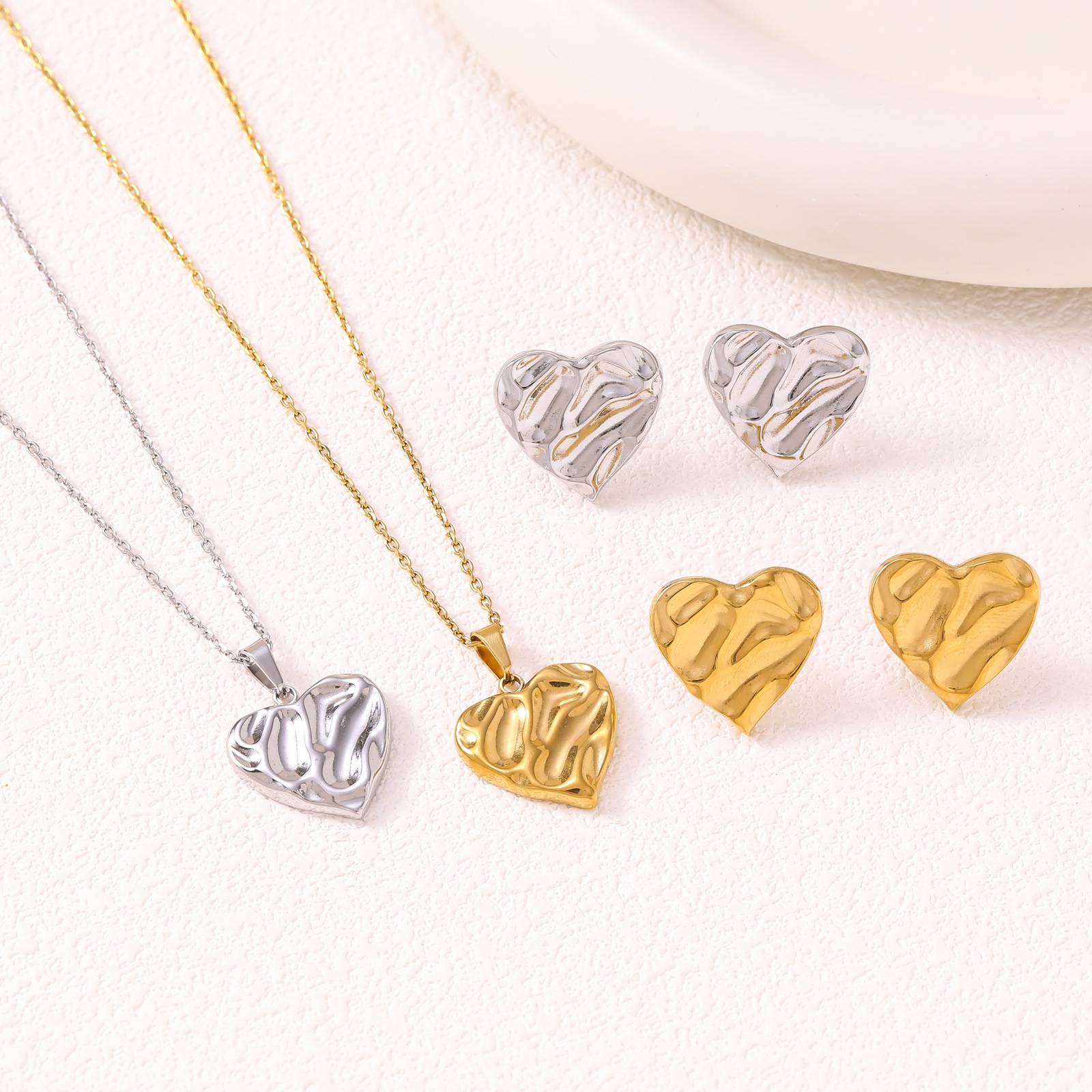 Temu Cross-Border Hot Selling Ins Style Simple Heart Earrings Necklace Set High-End Stainless Steel Peach Heart Earrings for Women