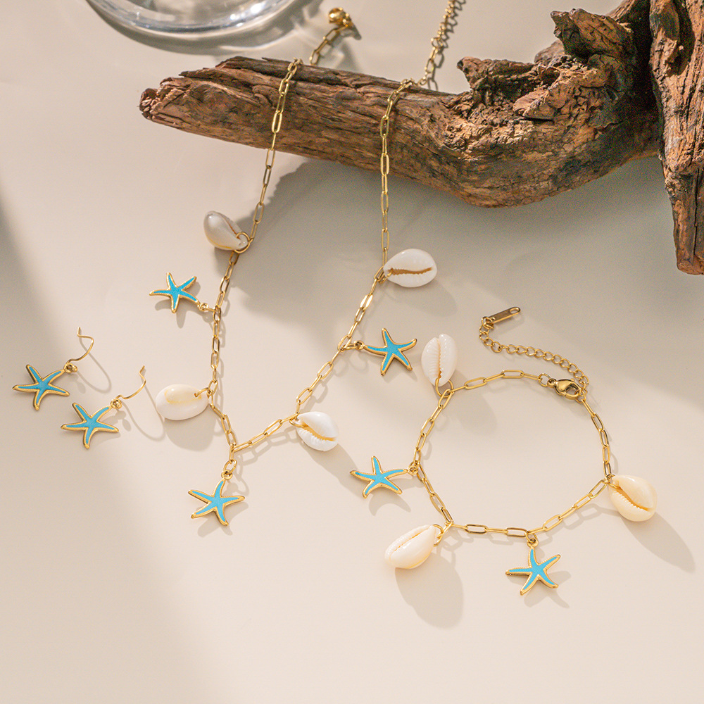 Cross-Border Amazon New Product Starfish Shell Necklace Set Fashionable Temperament Versatile Holiday Jewelry Birthday Gift for Women