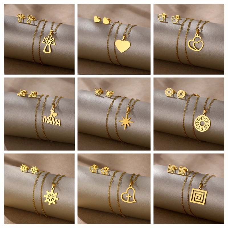 South America's New Stainless Steel Angel Mother's Day Heart Geometric Necklace Earring Set Hip-Hop Glossy Accessories