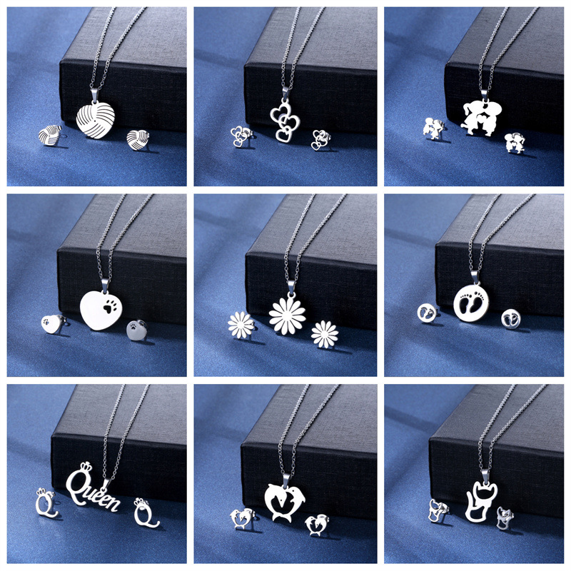 Cross-border new South American stainless steel necklace earrings set wholesale fashion geometric animal love two-piece women