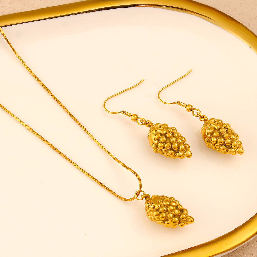 Manufacturer Wholesale European and American Fashion Grape Earrings Clavicle Chain Light Luxury Stainless Steel Grape Pendant Necklace Earrings Set